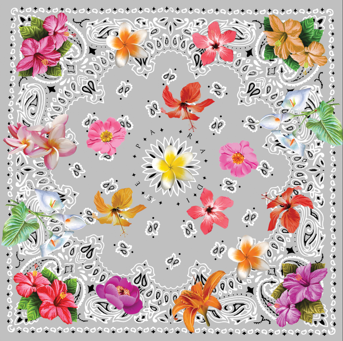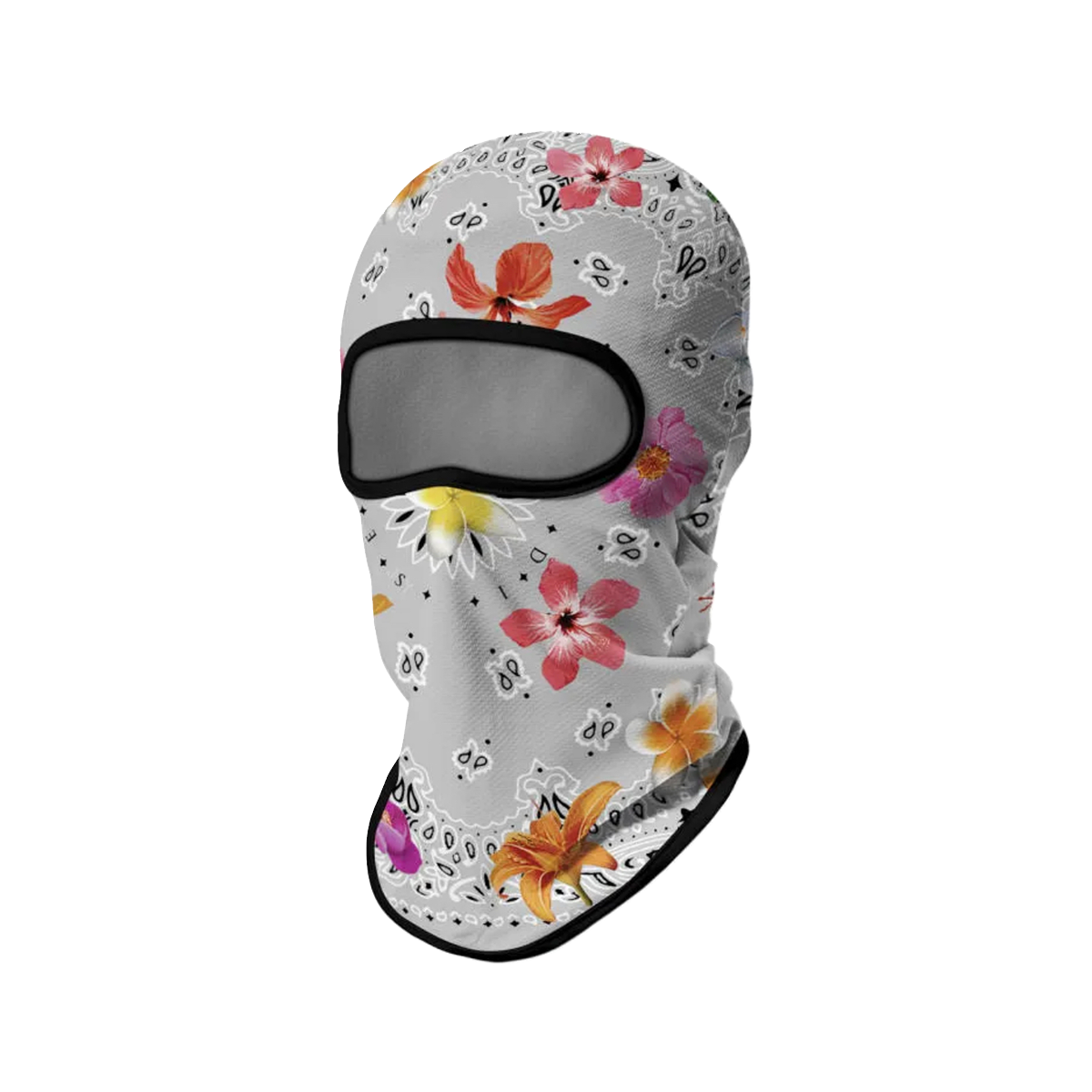 Cagoule bandana fleuris. Le motif bandana est surplombé de fleurs tropicales en hommage à notre région : la Caraïbes