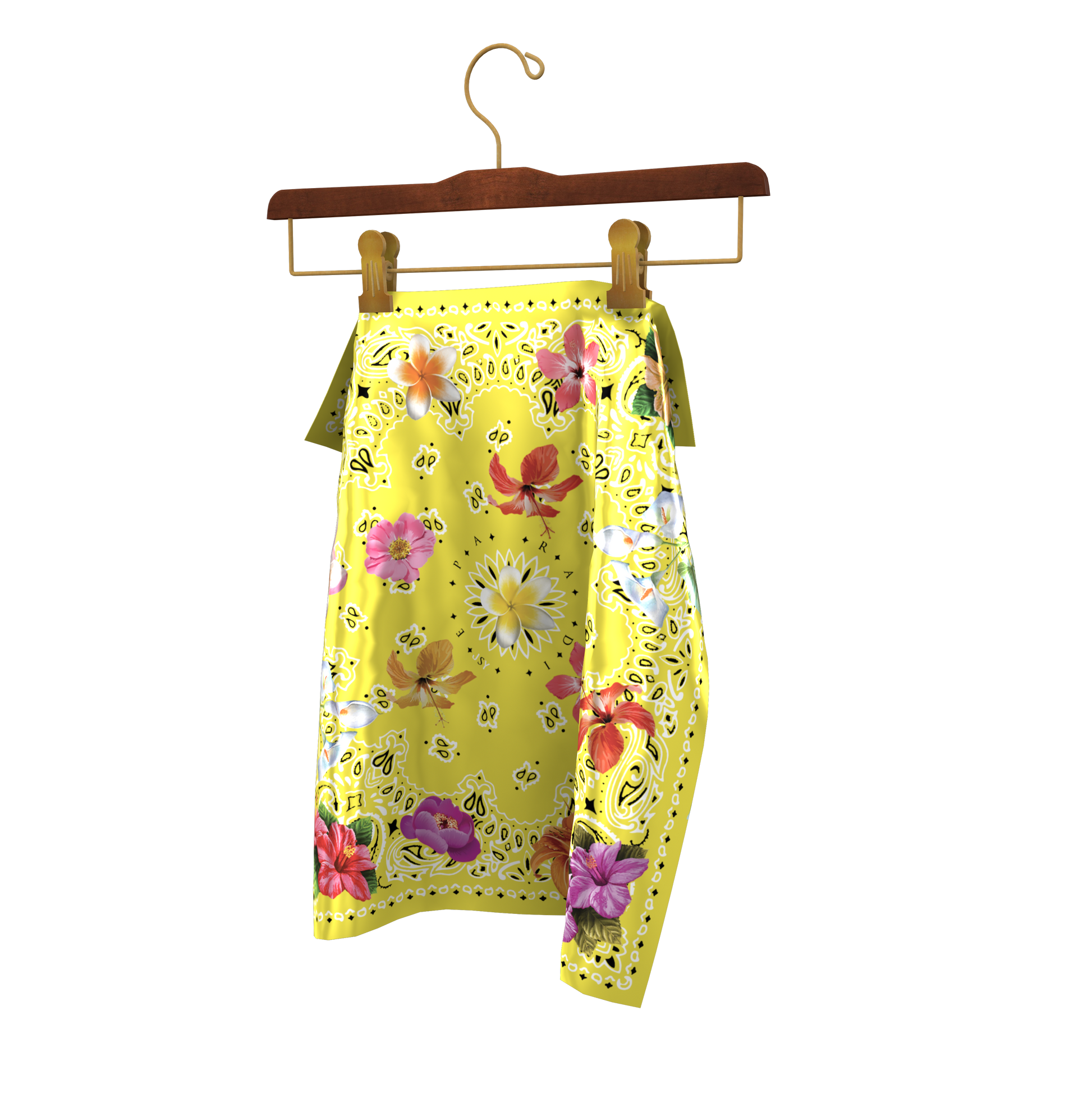 Bandana carré oversize fleuris. De dimension 60 cm de coté, ce foulard offre de multiples utilisations. Le motif bandana est surplombé de fleurs tropicales en hommage a notre région : la Caraïbes