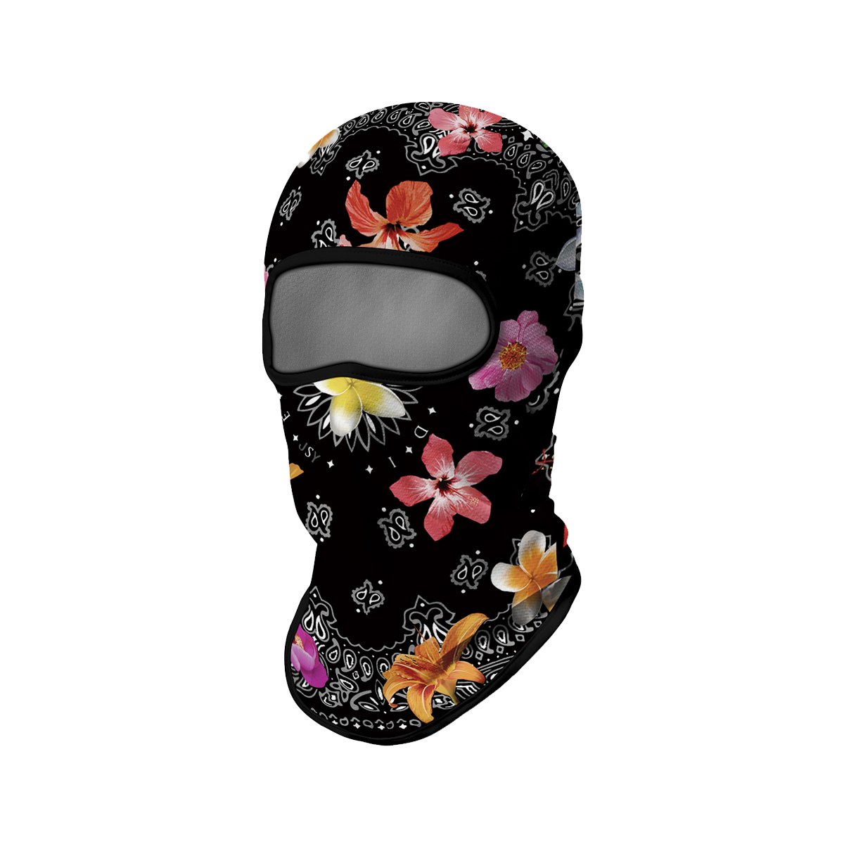 Cagoule bandana fleuris. Le motif bandana est surplombé de fleurs tropicales en hommage à notre région : la Caraïbes