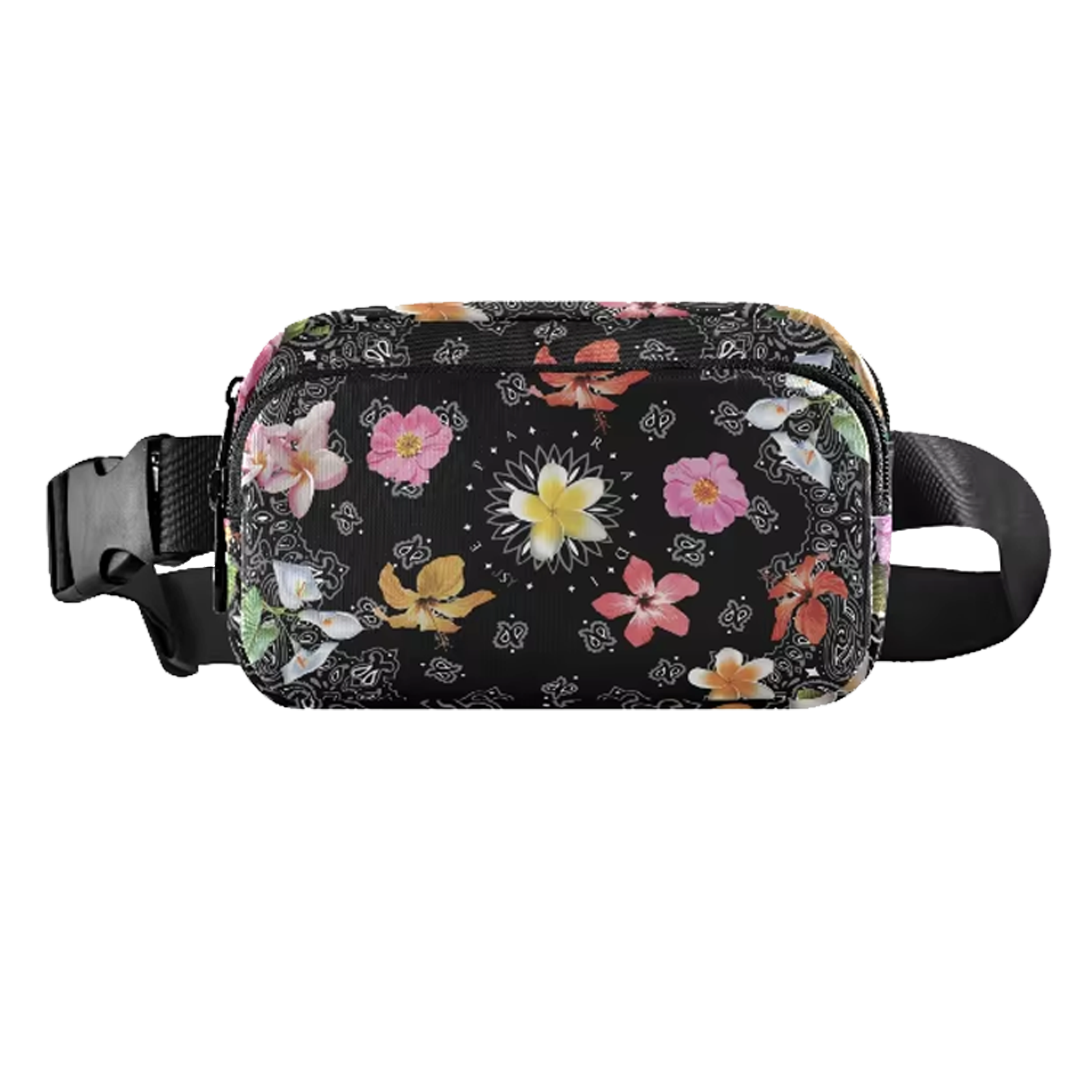 Sacoche Bandana carré fleuris. De dimension 40x27x17 cm, cette sacoche offre de multiples utilisations. Le motif bandana est surplombé de fleurs tropicales en hommage a notre région : la Caraïbes