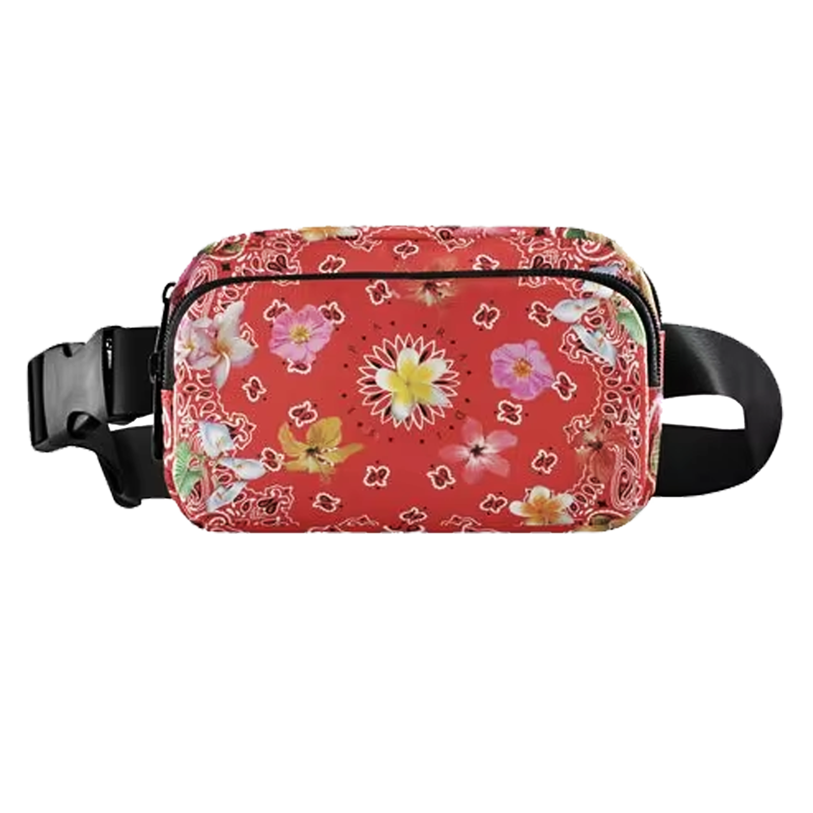 Sacoche Bandana carré fleuris. De dimension 40x27x17 cm, cette sacoche offre de multiples utilisations. Le motif bandana est surplombé de fleurs tropicales en hommage a notre région : la Caraïbes