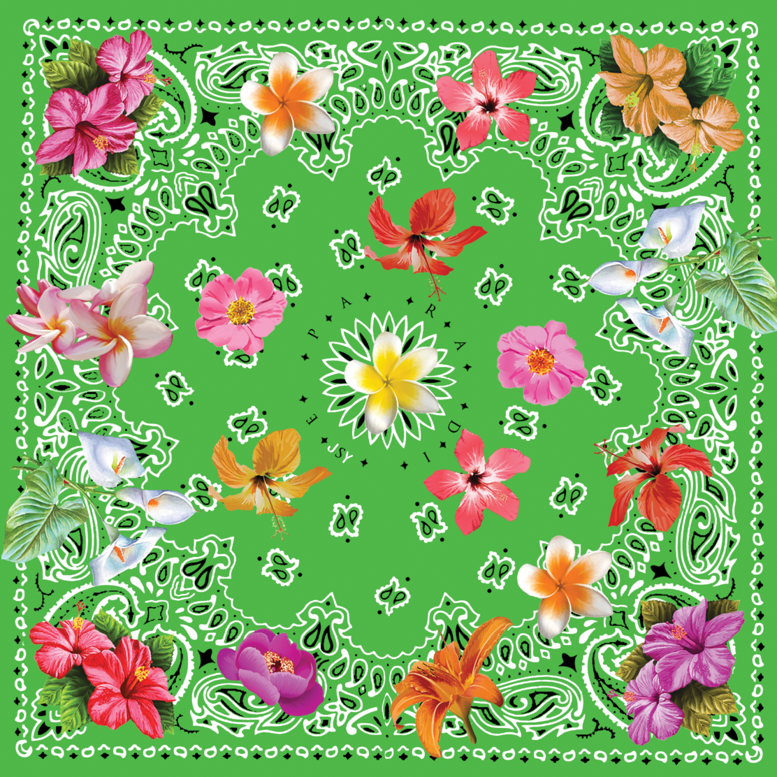 Bandana carré oversize fleuris. De dimension 60cm ou 100 cm de coté, ce foulard offre de multiples utilisations. Le motif bandana est surplombé de fleurs tropicales en hommage a notre région : la Caraïbes